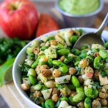Soybeans are a source of eight of the essential amino acids, making it one of the best sources of plant-based protein. Soy is higher in fat than other legumes, however it’s mainly good fat (monounsaturated and polyunsaturated fats, including omega-3 fatty acids). Substituting saturated fat sources with unsaturated fats may help lower your cholesterol levels and reduce the risk for heart disease. Soybeans are also a good source of calcium (healthy bones + teeth), iron (prevents anemia) and magnesium (proper heart, muscle + immune function).
