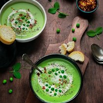 Green peas are low in fat and sodium but high in fiber. They contain the antioxidants lutein and zeaxanthin, which keeps your eyes healthy. Both the fiber and lutein in peas improve heart health by lowering cholesterol and preventing the buildup of plaque along your artery walls. They also have vitamin C for a strong immune system. The vegetarian proteins and high fiber content in green peas helps with blood sugar regulation by slowing down how quickly sugars are digested.