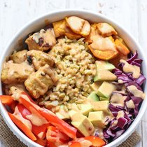 Tempeh has a higher amount of protein, dietary fiber, and vitamins than tofu because it is made from whole soybeans that are fermented. It has a firm texture and a nutty mushroom-like taste. Because tempeh is fermented it contains probiotics which helps with indigestion and boosts your immune system. Tempeh contains a high amount of manganese and vitamin B3, which helps the body to burn carbs. It's also a great source copper which prevents gray hairs and helps your skin to stay healthy.