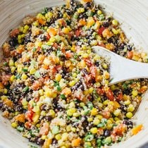 Quinoa has a nutty flavor and a texture that has a slight crunch. It is a great source of manganese + B vitamins, which facilitates metabolic activity and helps the body to burn carbs. Quinoa is a great way to get fiber in your diet as it has 50% more than brown rice and is easier to digest. It is also rich in phosphorus which is needed for the healthy bones and teeth.