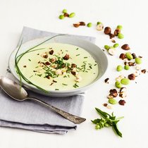 Edamame are green soybeans that taste like a mix between lima beans and green peas. They are a good source of vegetarian proteins + fiber that is low in calories making them a great option for snacks, soups and salads. Edamame is rich in folate which helps lower the risk of cardiovascular disease and protects the brain from dementia.